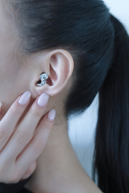 청각 보호를 주얼리로 재해석한 아이코닉한 이어플러그. 빛나는 크롬 바디 위에, 스와로브스키의 팔각형 크리스털을 정교한 3D 프린팅 베젤로 감싸 완성했습니다. 크리스털의 맑음을 담은 사운드를 경험해 보세요.